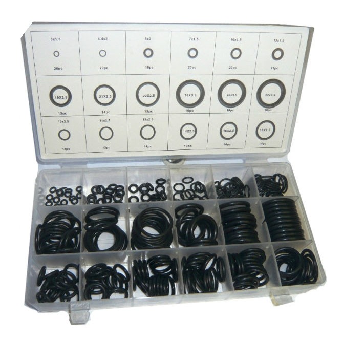 Маслобензостойкие резиновые уплотнительные прокладки наиболее распространенных размеров. Кольца упакованы в удобные пластмассовые коробки, с указанием всех типоразмеров и количества.